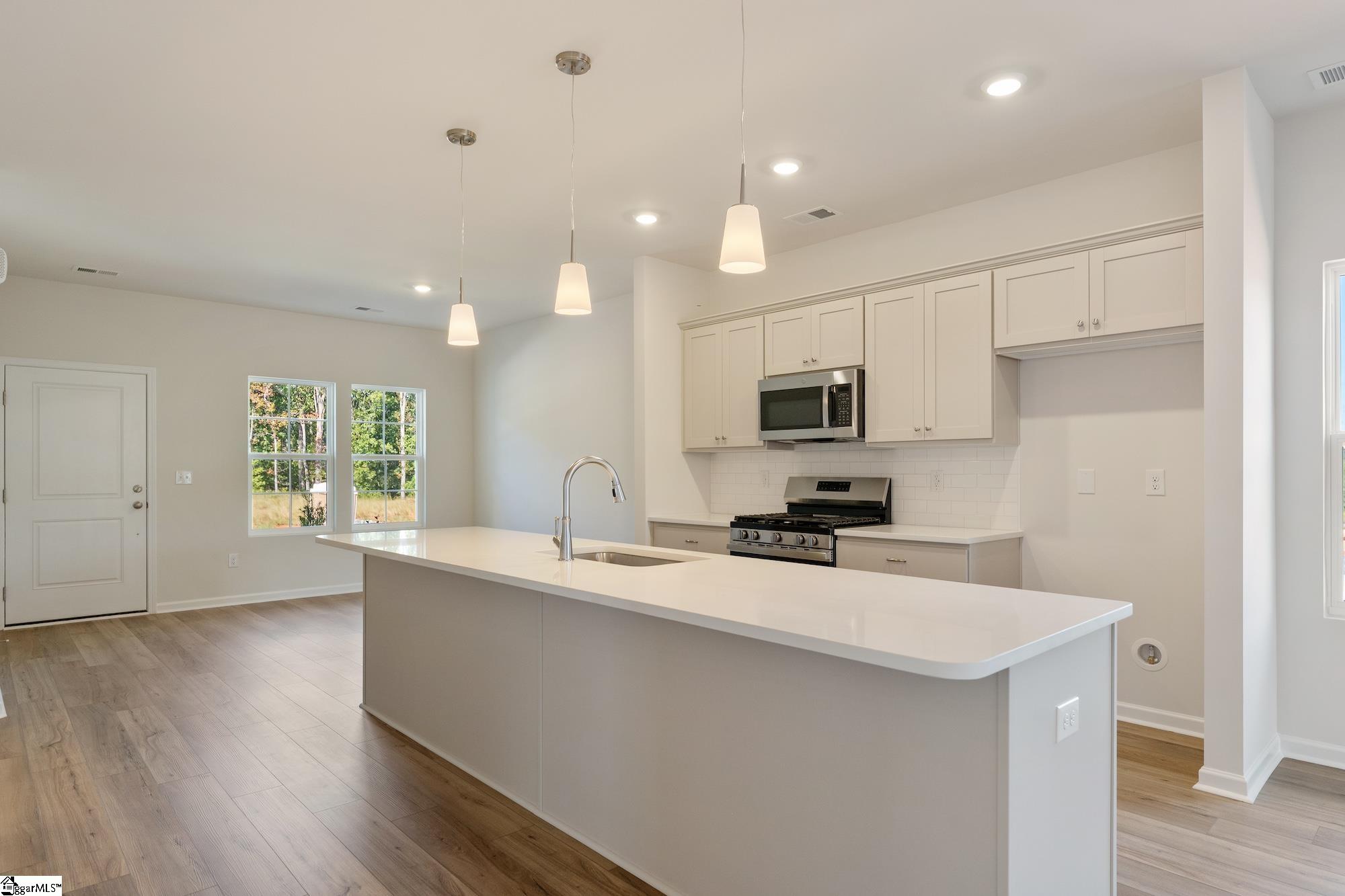 This Brunswick floorplan is a charming single-story home nestled in the new construction community in Inman. Enjoy the convenience of living minutes from historic downtown Inman, being less than 15 minutes from all the shopping and dining you could need off HWY9 in Boiling Springs, and less than 1 mile from I26. This home sits on a fully sodded yard and backs up to a local peach farm. Zoned for Boiling Springs Middle and High School, this community is a gem. Step inside to discover an open floorplan adorned with luxury vinyl plank flooring that flows seamlessly through the main living area, bathrooms, and laundry room. The heart of the home is the modern kitchen, complete with stainless steel appliances, upgraded cabinetry, sleek countertops, and a large island that is perfect for casual dining and entertaining. The primary bedroom is located at the back of the home and overlooks the backyard with amazing view of the neighboring peach farm. The two secondary bedrooms share a Jack-N-Jill style bathroom with a door separating the vanity from the tub/shower. Every detail has been carefully curated, with upgraded fixtures and finishes throughout, adding a touch of sophistication to every room.